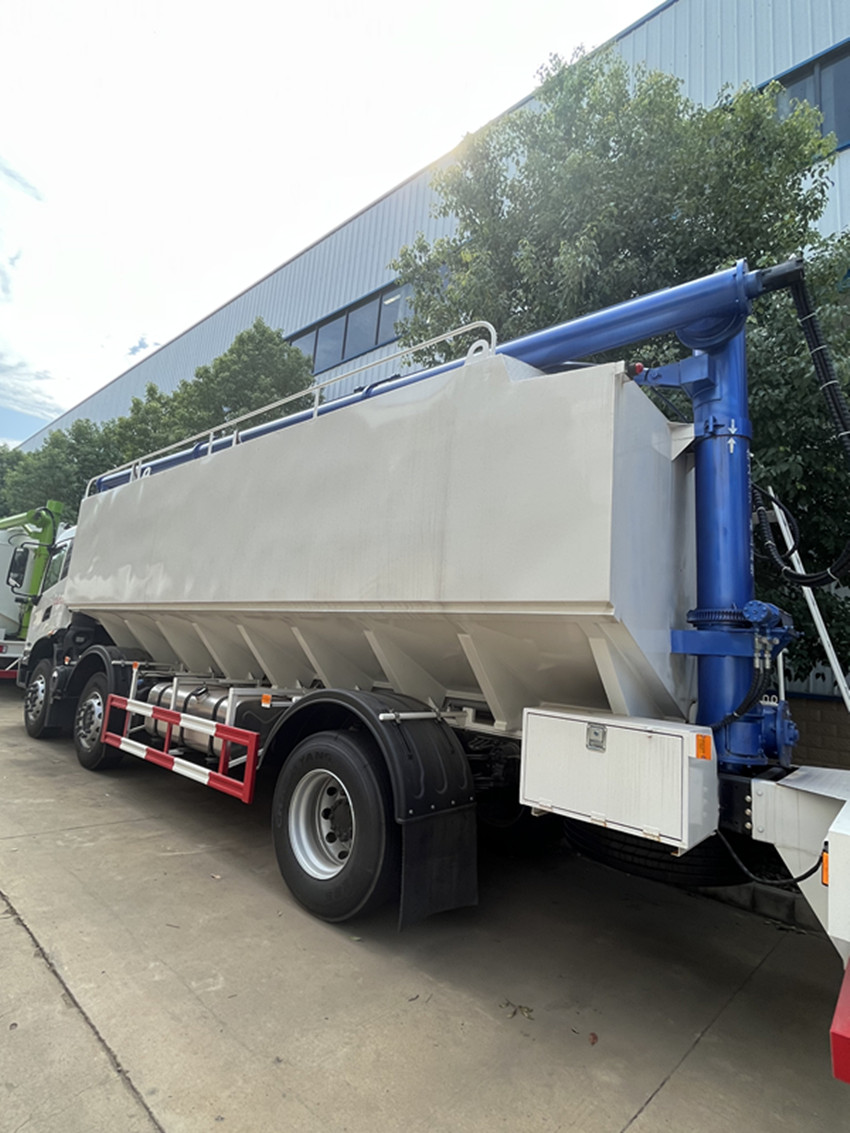可獨(dú)立控制各分倉卸料順序和速度,整車3條蛟龍(底部水平絞龍、尾部垂直絞龍、頂部卸料絞龍),由取力器經(jīng)車輛變速箱取力后,將動(dòng)力傳動(dòng)至高壓油泵以驅(qū)動(dòng)液壓系統(tǒng)帶動(dòng)各絞龍工作,或者由3個(gè)5.5kw 380v電機(jī)帶動(dòng)各絞龍工作,頂部絞龍液壓控制舉升,可左右旋轉(zhuǎn)180°此車公告+環(huán)保+燃油齊全,全國上戶無憂!